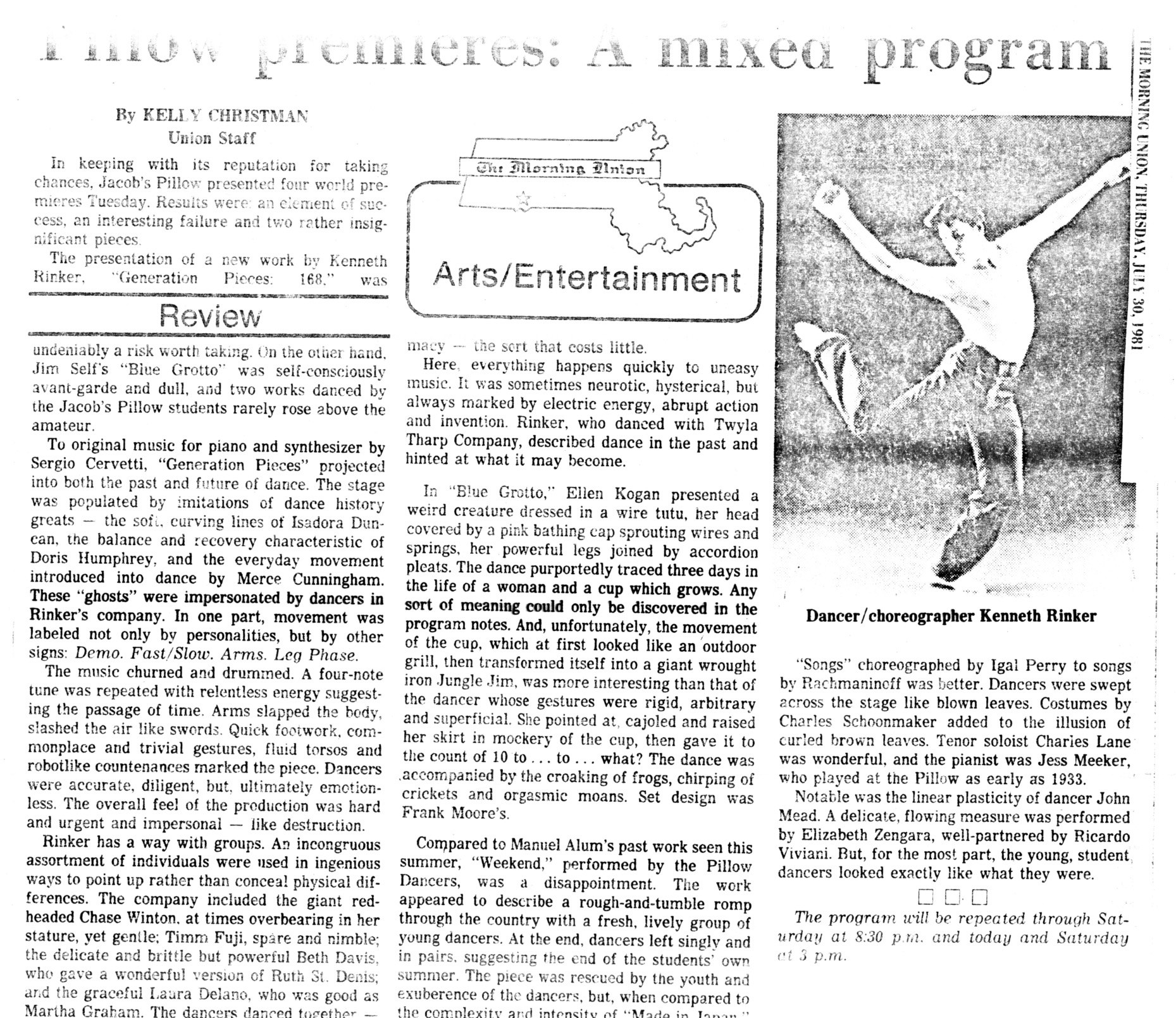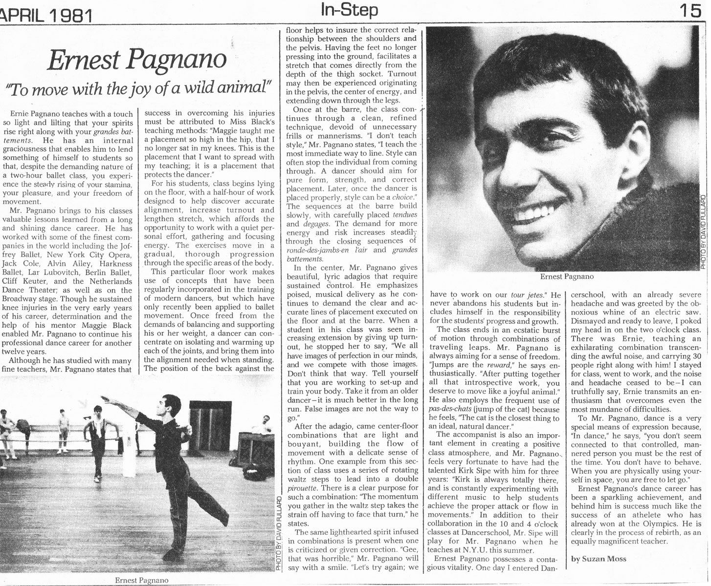 He offers, from his incredible performing experience over the years as a dancer and a choreographer of opera and musicals, a unique approach to teaching which captures the students immediately with his energy. The workshops he gave were always a high point in the program and valued highly by the students and by me.